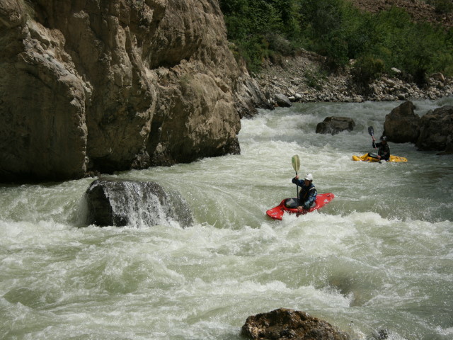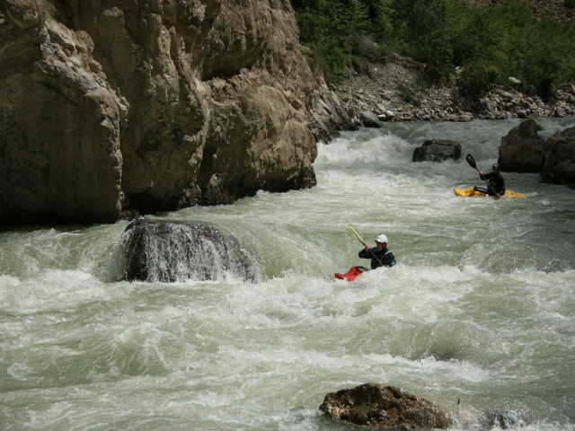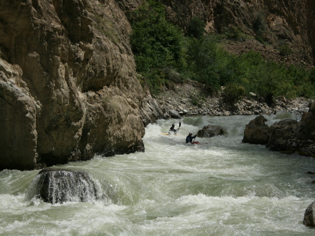 Higher upstream on the Coruh, just downstream of Ispir lie the Joan Collins set of rapids. The first has been lost to the Dam works which near completion, the second, according to Rob Hind who had seen it a few days earlier was a gnarly mess of a rapid with the third and fourth being runnable.