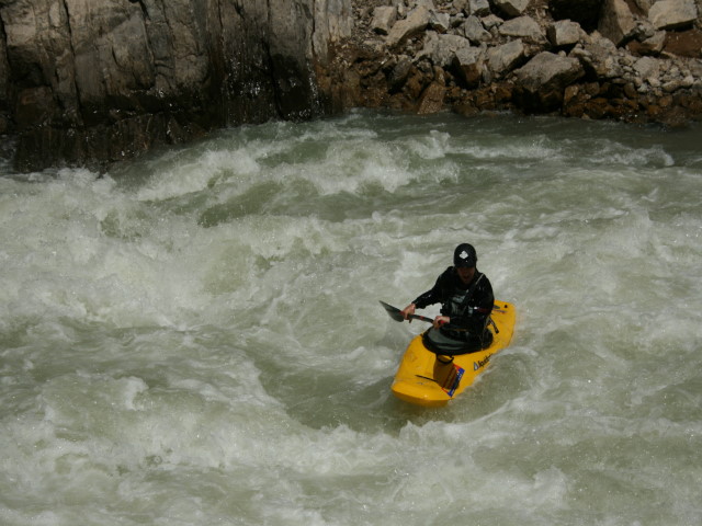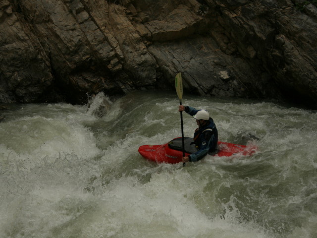 Starting with five on the water we were soon whittled down to three to tackle the first rapid in the gorge. Coming in from river right paddling hard to make the river left line and the easier route that offered. The next three hours were spent inspecting each of the larger rapids and making the moves necessary to progress downstream. This is a true classic stretch of water offering challenging kayaking in spectacular scenery and all only five and a half hours flight time from the UK.