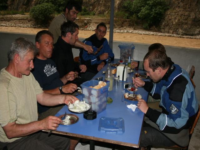 We stop for kebabs and tea at a road and riverside cafe before continuing and floating into the Coruh for the last couple of kilometres of big water. Our paddling at an end we return to Yusufeli for tea and medals.