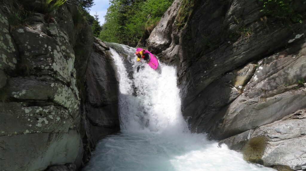 Described by Dr Robin on ukriversguidebook back in the day as ‘an insanely steep low volume creek with mind blowing slabs and drops. A gem’. Who are we to argue? The Egua is the white water park for kayaks you might design if you won the euro millions. It is probably the perfect example of the regions rivers that have been drawing boaters to the area since that first descent. One of the many tributaries of the Sesia river it’s origins lie high up the valley and the put in is a fair drive up the SP10 from Balmuccia. If you are making the pilgrimage to Italy it is most definitely a river to include in your hit list.