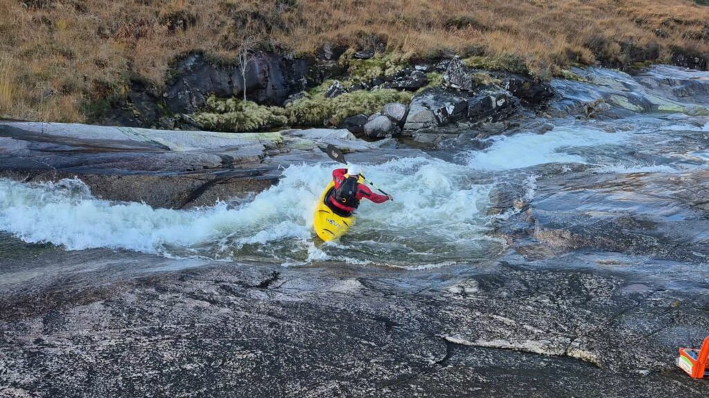Dam. The Allt a Chaoruinn now has a hydro scheme built above the traditional put in, Speed.