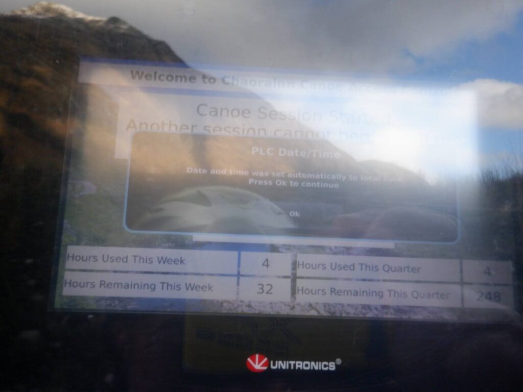 Access is easier than it was, walk over the bridge and up the double track, up to the hydro house, punch in the code, only available to SCA members and off you pop. It takes about 30 minutes for the flow to kick in, (if water is available) and can only run a limited number of hours through the week, but according to the display, we are the only ones to have used the code in recent days