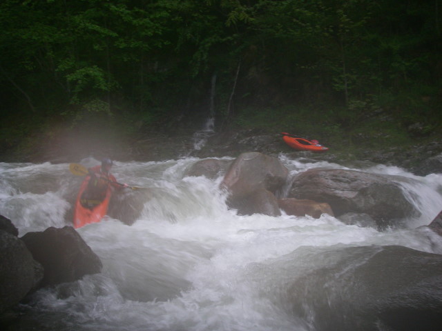 The drop immediatley after is one that deserves some respect with the river turning right immediatley on landing a 12 foot must make boof coming off your right blade, the water pushes to the opposite wall and recirculates in that I don't want to be there kind of way.