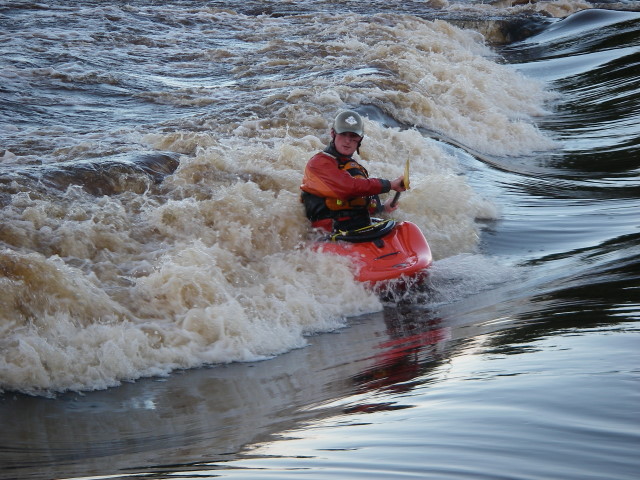 Lyndon’s Mythical wave works at certain high river levels, ones man’s flood is another man’s surf wave.