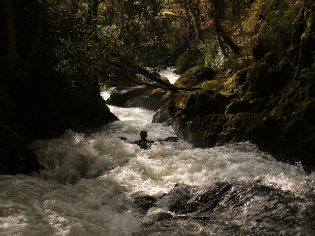 The entry in the guide book is short, with the initial river description described as audacious, steep could be another word to describe it. The Cwm Mynach was going to provide the mornings entertainment, and it delivered in spades. Running everything on Daz’s descriptions we were assured that gravity always wins. Definitely the sort of run were you want someone who has done it before with you. Any guide couldn’t do it justice and you would be hard pushed to remember anything you had read about it. Inspect as you go.